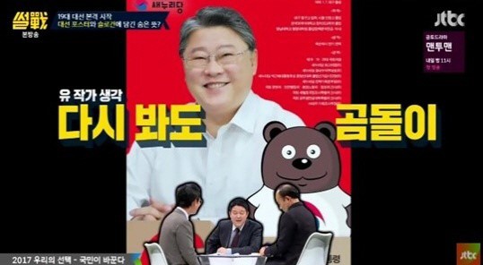 그러면서 유시민은 “안철수 후보보다 조원진 후보의 곰돌이 포스터가 가장 눈에 띄더라”고 말해 웃음을 자아냈다.