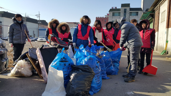 인천 남구 숭의1·3동 주민센터는 13일 한국마사회 인천 남구문화공감센터 직원 및 주민 등 20여명이 참여한 가운데 깨끗한 마을 만들기를 위한 ‘가로 환경정비’를 실시했다. 사진은 참여자들이 쓰레기를 수거한 후 기념촬영을 하는 모습. (사진제공=남구청)