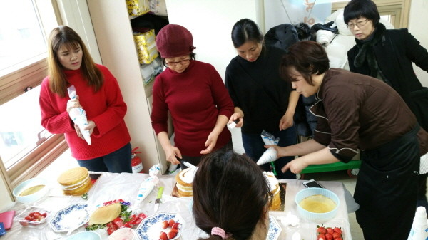 광진구는 지난 14일 오전 10시~오후 12시 구 다문화가족지원센터에서 다문화가족 30명을 대상으로 ‘수제 케이크 만들기’ 체험행사를 마련했다. 사진은 참여자들이 케이크를 만들고 있는 모습.(사진제공=광진구청)