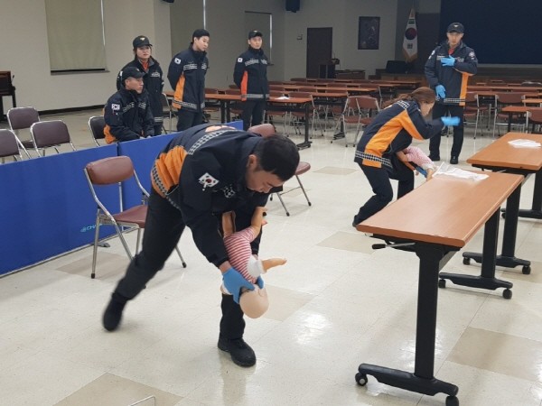 경기 동두천소방서는 지난 14~15일 양일간 소방서 차고 및 대회의실에서 외근근무자를 대상으로 ‘소방전술훈련 평가’를 실시했다. 사진은 소방관들이 상황별 인명구조 훈련을 진행 중인 모습.(사진제공=동두천소방서)