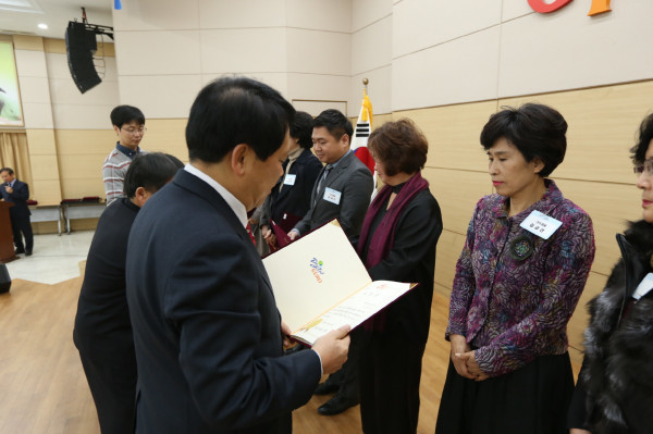 구로구가 지난 15일 '2017년 4분기 모범구민 표창식'을 개최했다. 4분기 모범구민 표창 대상자는 ▲모범 통·반장 및 직능단체 ▲교육 및 문화 ▲사회복지 ▲청소 및 환경 ▲지역사회발전 ▲재난안전 6개 분야에 기여한 158명이다. 사진은 모범 구민들이 표창장을 받는 모습. (사진제공=구로구청)