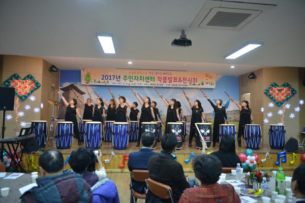 경기 수원시 영통구 매탄2동 주민자치센터는 지난 15일 올해를 마무리하며 주민자치센터 작품발표 및 전시회를 개최했다. 사진은 참여자들이 난타 공연을 선보이는 모습. (사진제공=영통구청)