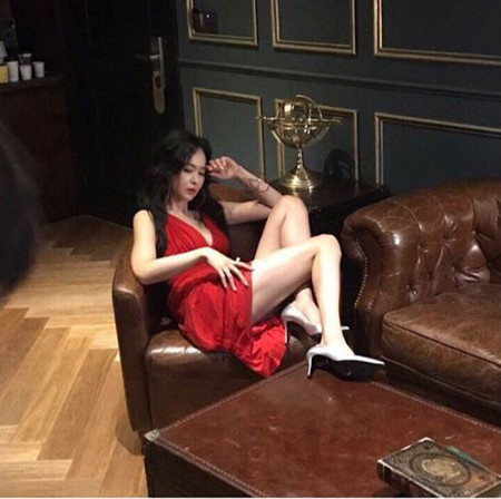 공개된 사진 속 유소영은 레드색 원피스에 하이힐을 신은 모습으로 소파에 앉아있다. 웨이브가 있는 긴 흑발 머리로 청순함을 뽐냈고 볼륨감이 드러난 몸매로 시선을 끌었다.