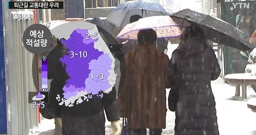한편 기상청은 또 크리스마스이브 사이에는 전국 곳곳에 또 한번 눈, 비가 내릴 가능성이 있다고 예보했다.