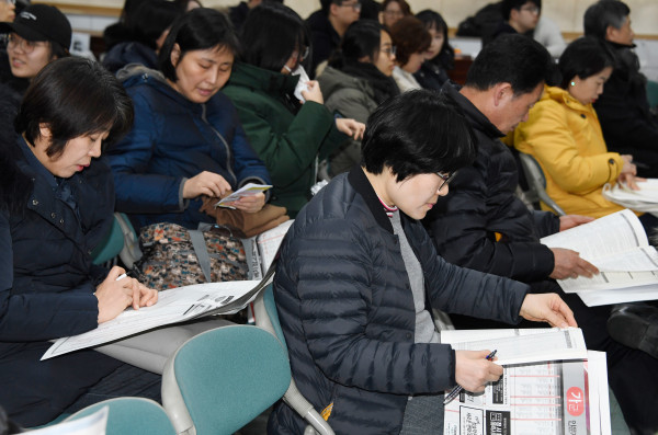 광진구는 20일 오후 2~6시 구청 대강당에서 ‘2018학년도 정시 대학입시 설명회’를 개최했다. 사진은 설명회에 참여한 학부모 및 학생들이 열심히 강의를 듣고 있는 모습. (사진제공=광진구청)