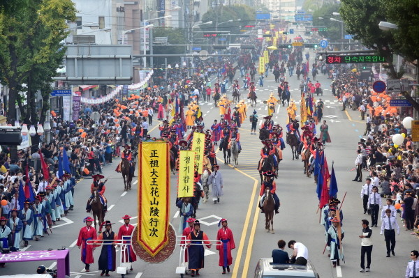 이번 수원화성문화제의 백미는 서울 종로구 창덕궁에서 화성시 융릉(사도세자묘역)을 연하는 59.2km 구간의 ‘정조대왕 능행차 재현’이었다. 을묘년(1795년), 창덕궁부터 융릉까지 정조대왕의 능행차가 재현된 것은 220여년만이다.