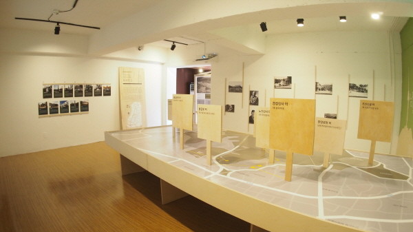 중앙에 커다란 테이블 형태로 코스 지도를 배치하고 8개 지점별 당시 모습과 설명을 담은 푯말을 세워 한 눈에 알아보도록 했다.