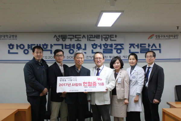 성동구도시관리공사, 한양대학교 병원에 헌혈증 기증