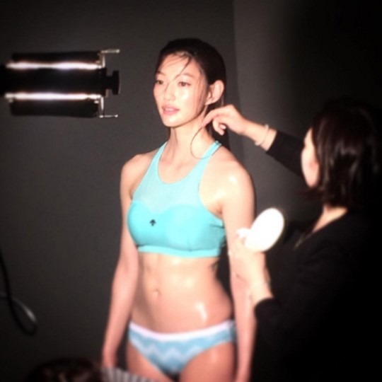공개된 사진 속 이엘은 땀에 젖은 채 스포츠웨어를 입고 탄력있는 보디를 뽐내며 화보 촬영에 임하고 있다.