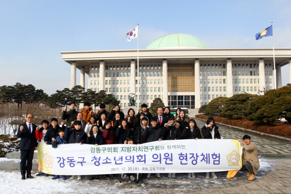 이와함께 청소년의원들은 강동구의회을 방문해 각 상임위원회실과 본회의장을 둘러보고, 의원들로부터 지방자치제도의 의미와 집행부 견제‧감시, 조례 제‧개정, 예산 심의 등의 지방의회가 하는 일에 대해 배웠다. 이어 자유롭고 편안한 분위기 속에 구민 복리증진 방향, 의원의 자질, 직업 정치인의 삶 등 다양한 주제로 토론을 진행했다.