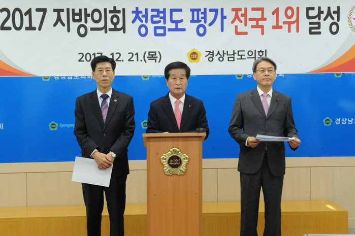 종합청렴도 평가에서 경남도의회는 2016년 6.37점에서 2017년도에는 6.76점으로, 직무관계자 평가에서는 2016년 7.66점에서 2017년 7.91점으로, 경제·사회단체 및 전문가 평가에서는 2016년 6.28점에서 2017년 6.73점으로, 지역주민 평가에서는 2016년 4.97점에서 2017년에는 5.46점으로 모든 분야에서 모두 상향평가 됐다.