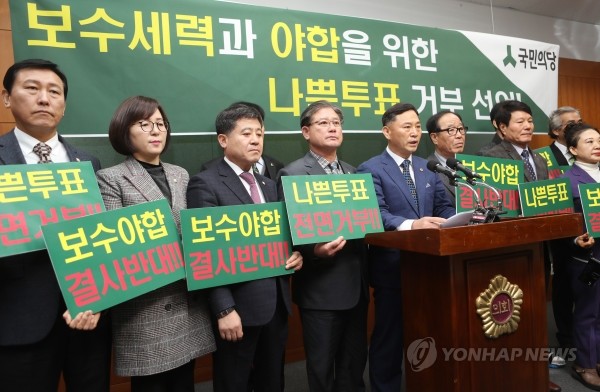 국민의당 전북도당 소속 광역·기초의원 27명은 26일 오전 전북 전주시 완산구 전북도의회에서 기자회견을 열고 국민의당-바른정당 통합 찬반 투표 반대 의사를 표명하고 있다.