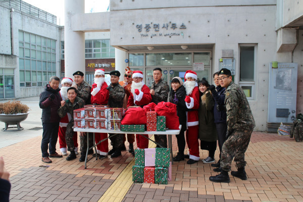경기 포천시 북부희망복지센터는 지난 22일 성동한우식당, 육군 95정비대대 마루나눔 봉사동아리와 함께 21곳 사례관리가구의 35명의 아동을 대상으로 ‘2017 해피크리스마스 행사’를 진행했다. 사진은 관계자들이 행사 참여에 앞서 기념촬영을 하는 모습. (사진제공=포천시청)