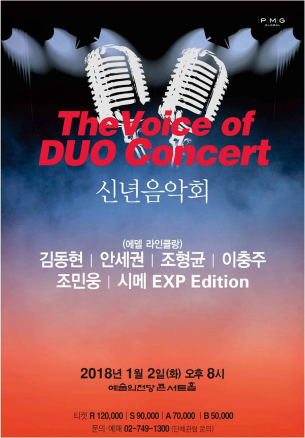 보이스 오브 듀오 (Voice Of Duo) 콘서트는 라스칼라, 빈필, 로린마셀, 쥬빈메타등의 세계최고의 클라식 공연과 허비핸콕, 칙코리아등 국내 최고의 클래식과 재즈 공연기획사인 (주)PMG의 대표적인 콘서트 브랜드로 팬텀싱어 우승팀과 오페라와 가곡분야에서 각광을 받고 있는 아티스트들의 콜라보레이션을 통한 레전드급 하모니를 선사하는 콘서트다