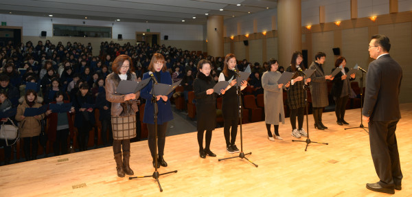 인천 연수구 어린이집연합회는 최근 연수아트홀에서 회원 350여명이 참여한 가운데 ‘보육교직원 윤리강령선언식’을 실시했다. 사진은 참여자들이 선서를 하고 있는 모습. (사진제공=연수구청)