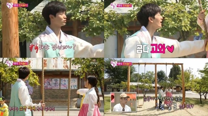 결국 조이는 육성재가 올라탄 그네를 밀어줬다. 이어 조이가 그네를 탔고 육성재는 아내의 모습을 보고 "예쁘다 예쁘네"라고 감탄했다.