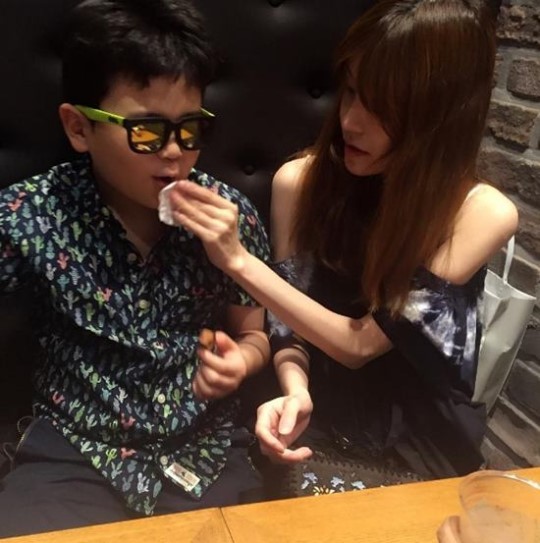공개된 사진에는 미러 선글라스를 끼고 엄마 곁을 든든하게 지키는 윤후의 모습이 담겼다. 아버지 윤민수와 '붕어빵' 같은 모습으로 웃음을 자아낸다.