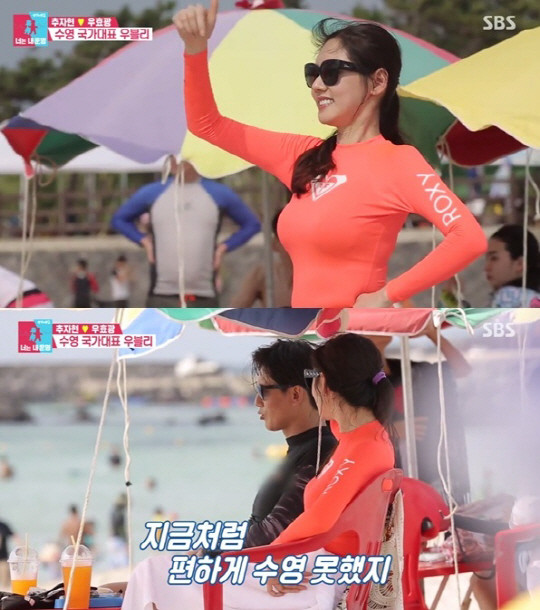 수영을 마친 추자현은 "남편이 있어서 물에 들어갔다. 원래 무서워서 못 들어간다"고 고백했고, 우효광은 "내가 너의 바다니까"라고 로맨틱한 멘트를 날렸다.