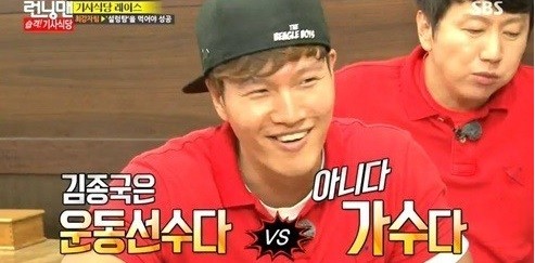 이광수는 “지금 김종국이 운동선수인지 가수인지 손님들끼리 큰 싸움이 벌어졌다”라고 깐족대 웃음을 자아냈다. 이어 식당 주인은 “김수로씨는 잘 안다”라며 “김종국씨가 가수인지 오늘 알았네”라고 말해 김종국에게 굴욕을 안겼다. 이에 김종국은 “올해 가수 데뷔 20주년이에요”라고 말해 웃음을 자아냈다.