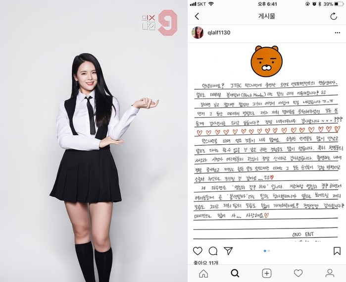 31일 주요 포털사이트 실시간 검색어 상위권에 '믹스나인'이 올랐다. 이와 관련해 JTBC '믹스나인'에 출연했던 블랙맘바 이용채의 손편지 인사가 눈길을 끈다.