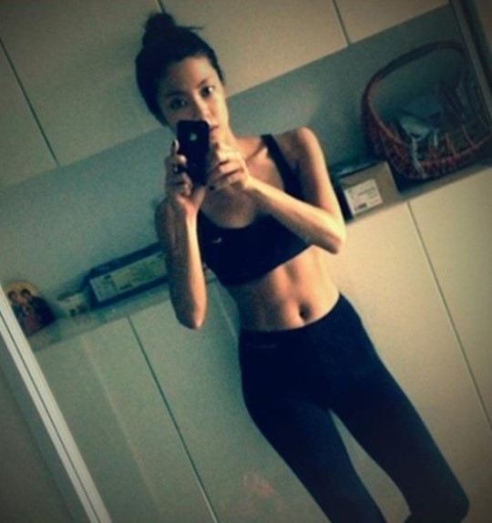 공개된 사진에서 이윤지는 타이트한 검정 운동복을 입고 환상적인 몸매를 과시하고 있다.