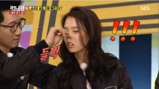 지석진은 이에 “코를 만져봐도 됩니까”라면서 송지효의 코를 ‘돼지코’ 마냥 이리저리 들췄다.