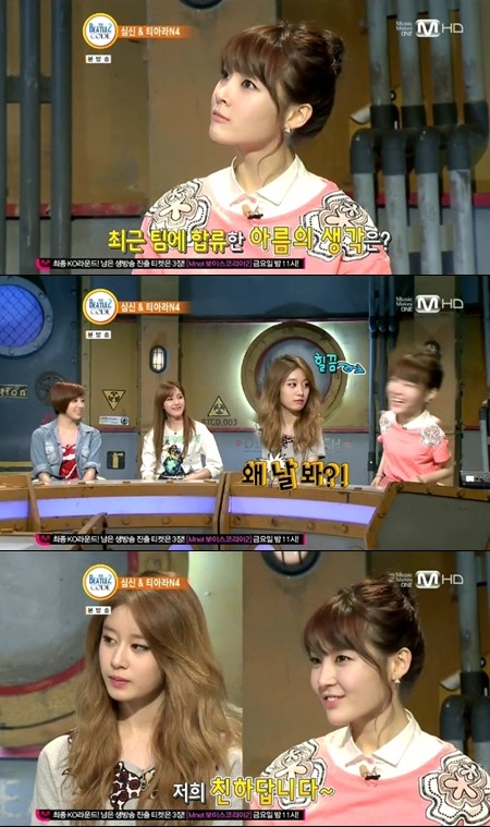 과거 방송된 Mnet ‘비틀즈코드’에서 심신과 티아라가 출연해 솔직한 입담을 뽐내며 왕따설에 대해 해명을 하는 시간을 갖기도 했다.