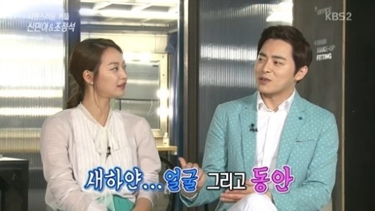 당시 방송에서 신민아는 리포터 지숙이 조정석의 첫인상에 대해 물어보자 "하얬다. 새하얬다"고 말했다. 신민아는 조정석의 흰 피부를 언급한 뒤 "그리고 동안이었다"면서 첫 만남 당시를 떠올렸다.