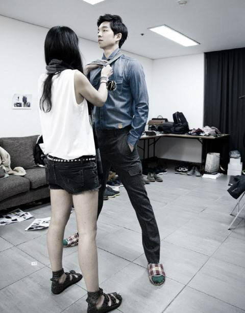 사진 속 공유는 광고 촬영현장 대기실에서 스탭의 손길에 옷매무새를 맡기고 있다. 공유는 자신보다 키가 작은 스탭을 배려해 다리를 벌리고 높이를 낮추는 이른바 '매너 다리' 포즈를 취하고 있다. 바지 주머니에 두 손을 집어넣은 채 '무심한 듯 시크한' 공유의 모습이 팬들의 이목을 집중시키고 있다.