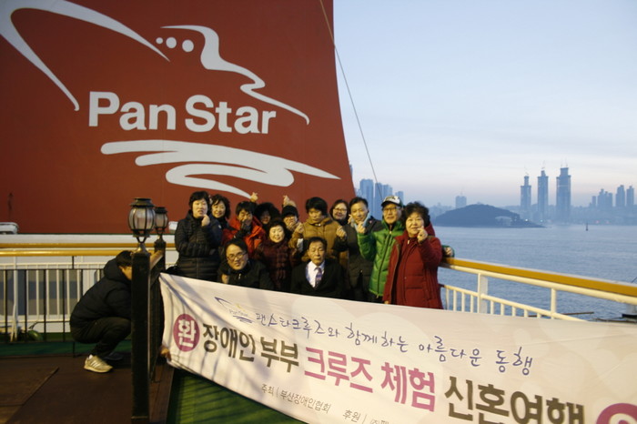 이날 원나잇크루즈를 체험한 장애인 부부들은 지난해 11월 17일 부산아시아드 보조경기장에서 부산광역시 지체장애인협회(회장 김광표)가 주최하고 부산광역시가 특별 후원한 ‘제28회 부산장애인 합동결혼식’을 통해 연을 맺은 신혼부부들이다.