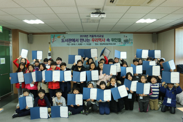 경북 구미도서관에서는 최근 구미지역 초등학교 4학년 40명을 대상으로 '겨울독서교실'을 운영했다. 사진은 교육에 참여한 학생들이 기념촬영을 하는 모습. (사진제공=구미교육지원청)