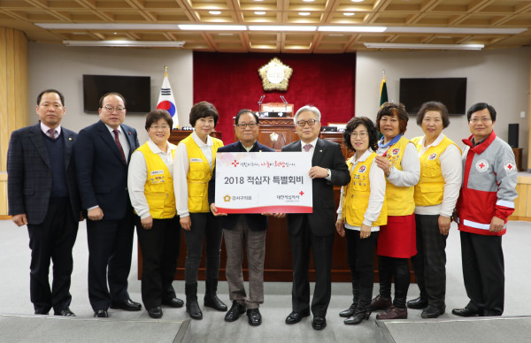 [시민일보=이진원 기자] 서울 강서구의회가 최근 구의회를 방문한 대한적십자봉사회 강서지구협의회 회원들에게 ‘2018년도 적십자 특별회비’를 전달했다고 17일 밝혔다.
