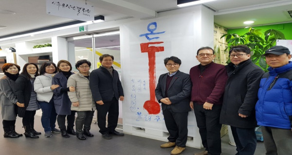 서울 은평구 증산동 주민센터는 16일 직능단체장 및 회원 등 10여명이 참석한 가운데 2018 희망온돌 따뜻한 겨울나기사업의 일환으로 ‘사랑의 온도를 올려주세요’ 행사를 가졌다. 사진은 기부에 참여한 단체 관계자가 기념촬영을 하는 모습. (사진제공=은평구청)