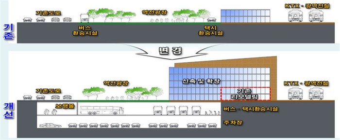 기본 구상에서는 고속철도와 광역전철의 기점과 종점 기능 극대화, 철도이용자의 환승편의 증진을 위한 교통시설 집적, 관광‧교통안내센터 등 편의시설의 확충을 고려했다.