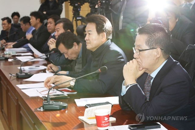 17일 오전 국회 의원회관에서 열린 ‘국민의당 지키기 운동본부’ 전체회의에서 박지원 의원(오른쪽)과 정동영 의원이 발언을 들으며 생각에 잠겨 있다.