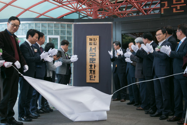 인천 서구의 문화예술발전을 위한 업무전반을 관장하는 서구문화재단이 17일 출범식을 하고 본격적인 업무에 돌입했다. 사진은 현판식 후 박수를 치며 축하하고 있는 관계자들의 모습. (사진제공=인천 서구청)