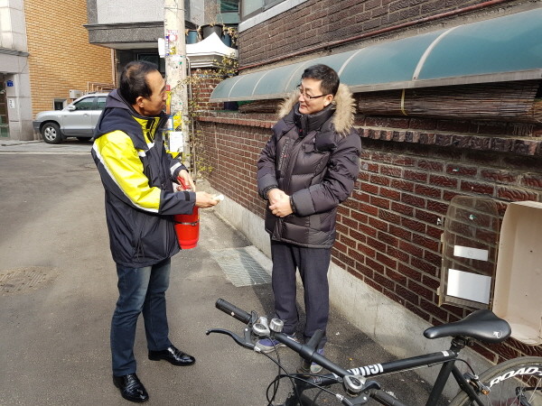 서울 영등포소방서는 지난 18일 오후 다문화 주택밀집 지역인 대림동에서 주택용 소방시설 설치 홍보 캠페인을 실시했다. 사진은 소방서 관계자가 주민에게 소화기 사용법에 대해 설명하는 모습.(사진제공=영등포소방서)