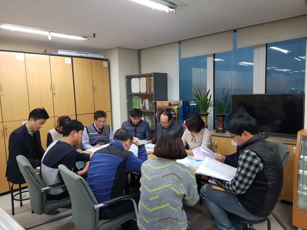 충남 아산시 공원녹지과는 지난 17~19일 일과 후 3일간 공원녹지과 사무실에서 '공원·녹지분야 법령 이해 및 업무 연찬회'를 실시했다. 사진은 참여자들이 회의하는 모습.(사진제공=아산시청)