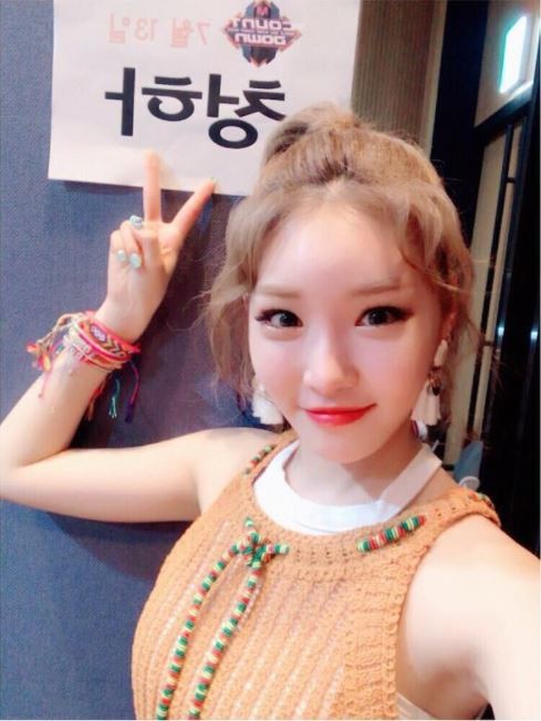 청하는 자신의 인스타그램에 "상큼미 팡팡 터졌던 청하가 청하 대기실 앞에서 브이. 상큼상큼 인간레몬 잊지마세요"라는 글과 함께 사진을 게재했다.
