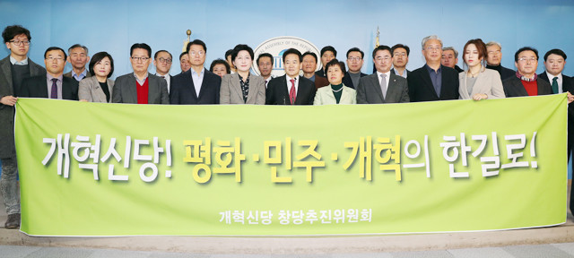 바른정당과의 통합에 반대하는 국민의당 의원들과 당원들이 21일 오전 국회 정론관에서 개혁신당 창당의 뜻을 밝히고 있다.