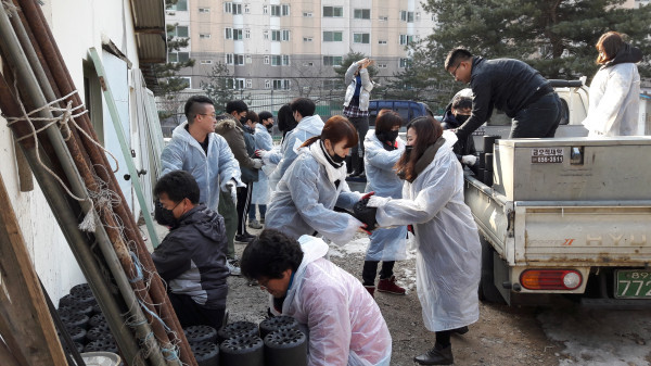 경기 양주시 무한돌봄행복센터는 지난 21일 저소득 취약계층에 대한 동절기 난방비 지원을 위해 따뜻한 세상만들기 주거봉사단체 단원들의 후원을 바탕으로 ‘사랑의 연탄나눔 행사’를 개최했다. 사진은 행사에 참석한 관계자들이 연탄을 나르고 있는 모습. (사진제공=양주시청)