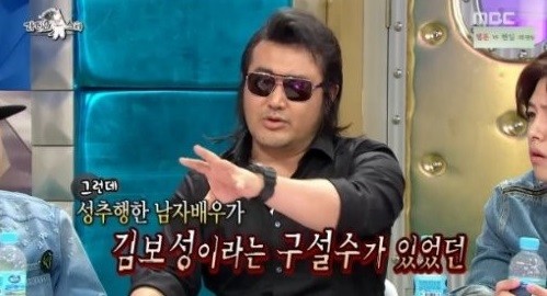 ‘라디오스타’ MC들이 성추행 루머를 언급하자 김보성은 “내가 아닌 다른 배우”라고 밝혔다.