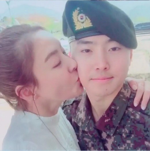 영상에는 군복 차림의 남동생과 이다희의 모습이 담겼다. 특히 이다희는 남동생 볼에 기습 뽀뽀를 하고 웃고 있다.