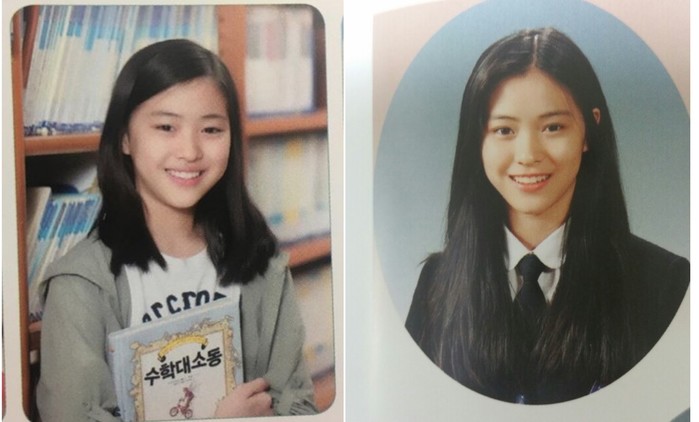 반면 중학교 졸업 앨범으로 보이는 사진에서는 초등학교 시절과 비교해 몰라보게 성숙한 모습들이 시선을 사로잡는다. 긴 생머리와 갸름한 얼굴선은 첫사랑을 떠올리며 보는 이들의 마음을 설레게 만든다.