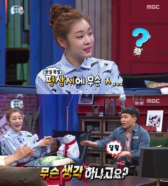 이윽고 양세형은 김연아에게 "지금 나이 대 친구들처럼 술도 마시냐" "정말 친구들 만나서 노냐" "주로 어디서 노냐" "장소가 어디냐"고 집요하게 사생활을 캐물었다. "이 동네, 저 동네"라고 말하던 김연아도 결국은 "압구정, 청담 아니면 한남동"이라고 조심스레 밝혔다.