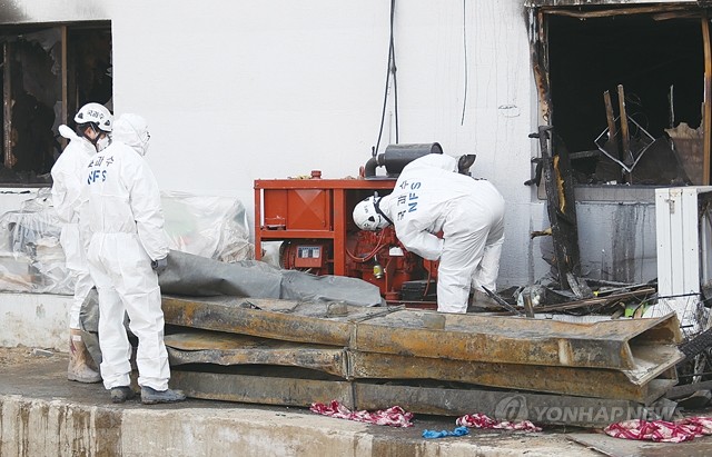 세종병원 화재 참사 사흘째인 28일 오전 세종병원 화재 현장에서 국과수, 경찰, 소방합동 현장 감식이 진행되고 있다.