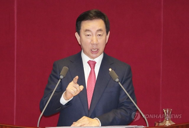 자유한국당 김성태 원내대표가 1일 오전 열린 국회 본회의에서 교섭단체 대표연설을 하고 있다.