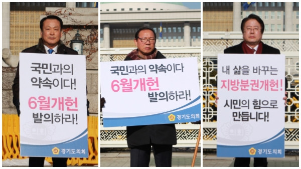 그러나 여·야 갈등으로 오는 6월 지방선거에서 개헌안 발의가 불투명해지자 경기도의회는 전국자치분권개헌추진본부와 함께 임시국회가 끝나는 28일까지 지방분권 개헌을 촉구하는 릴레이 1인 시위를 펼치고 있다.