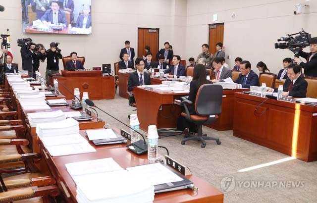 더불어민주당 법사위 소속 의원들이 6일 국회에서 열린 법사위원회에서 강원랜드 수사 관련 법사위원장인 자유한국당 권성동 의원의 외압의혹 문제로 퇴장함에 따라 파행되고 있다.