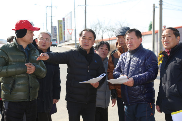 경기 안성시는 지역주민의 애로사항과 각종 생활불편사항을 해소하자는 취지에서 7일 원곡면 민원현장을 방문, 사전 접수받은 24곳 현장을 돌아보며 문제점을 듣고, 개선책을 논의했다. 사진은 현장에서 이야기를 나누고 있는 시청 및 면 관계자들의 모습. (사진제공=안성시청)